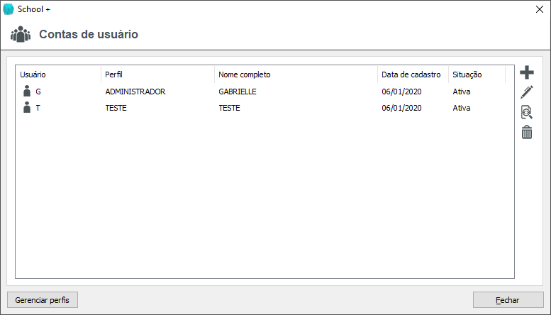 Essa ferramenta exibe os dados das contas de usuários além de permitir o gerenciamento de perfis e o gerenciamento das contas de usuários.